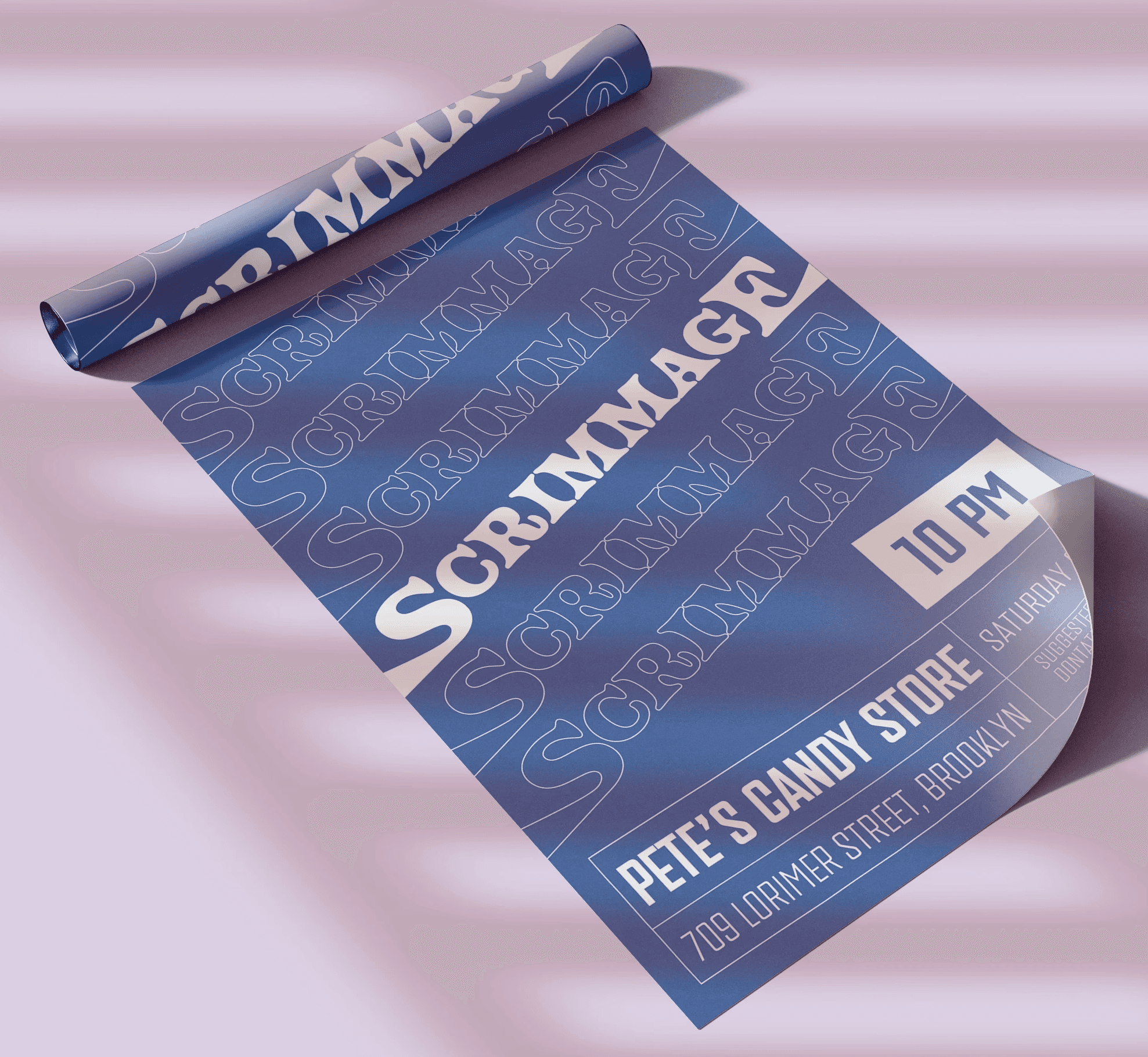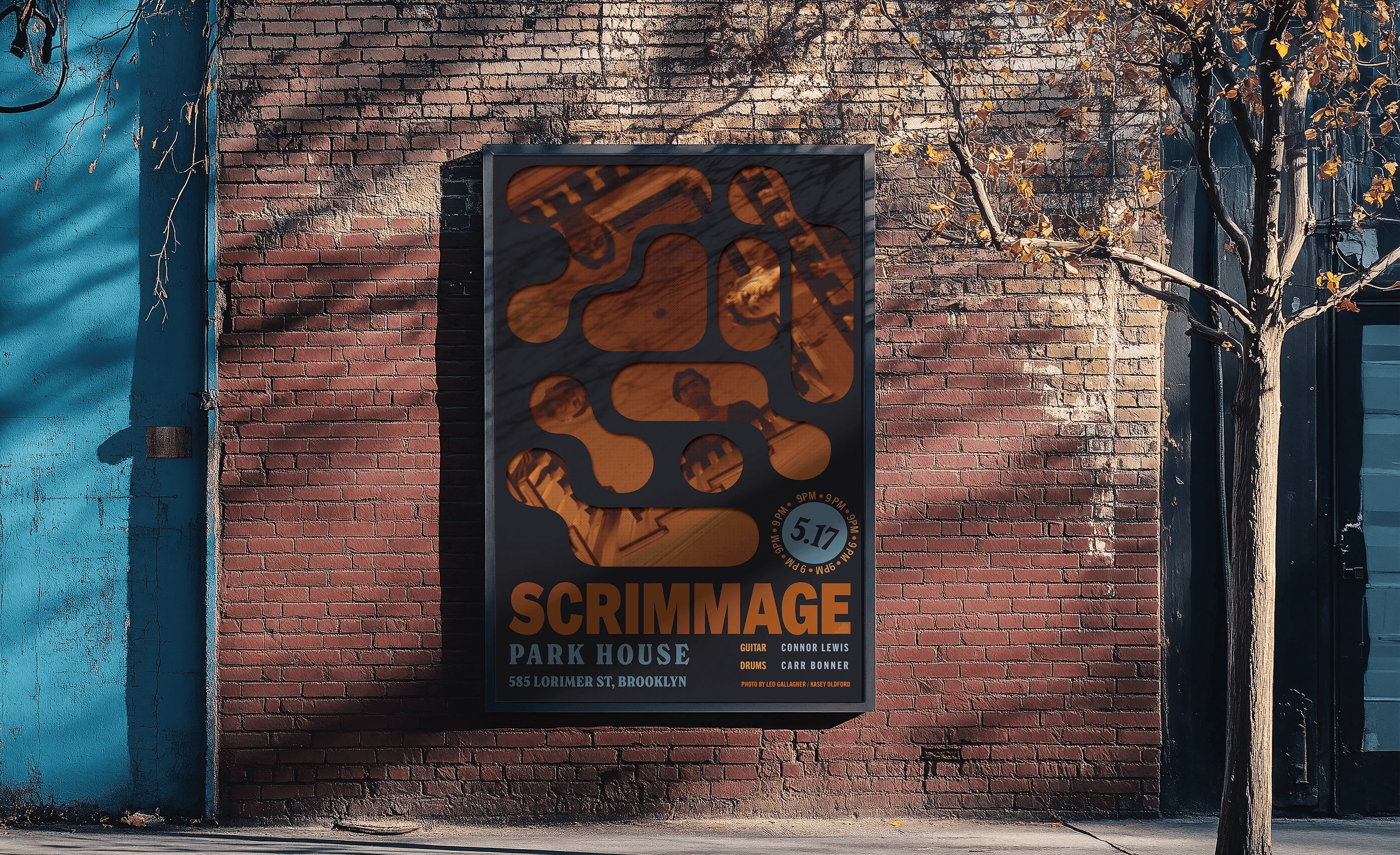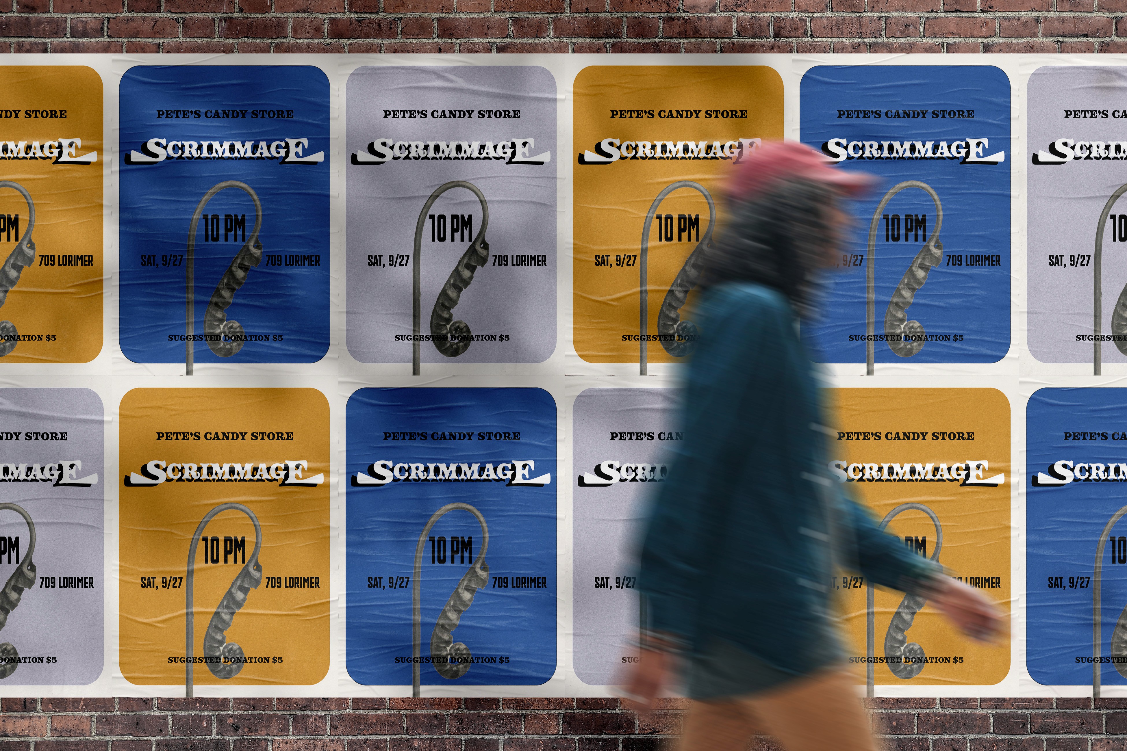 Posters for a concert run by Brooklyn-based psychedellic indie band Scrimmage, fronted by Connor Lewis and Carr Bonner.